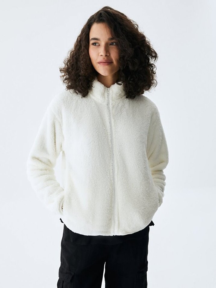 Beyaz Peluş Kadın Ceket