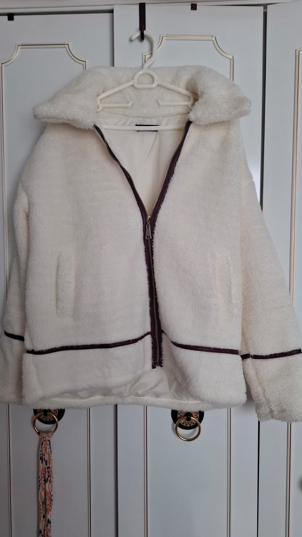 Yumuşak, kürklü detaylı beyaz kadın ceketi, rahat kesimi ve kesik yaka ile konforlu, sokak tarzı sunar. Midi boy ve pastel tonludur. ❄️ hiç giyilmedi büyük geldiği için satıyorum içi astarlı etiketi yok koparmıştım