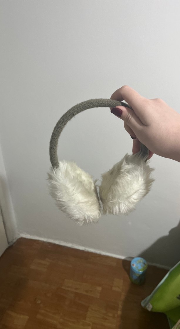 Yumuşak ve rahat kullanımlı beyaz peluş kulaklıklar.