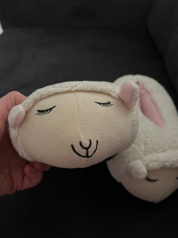 Yumuşak ve pastel beyaz renkte peluş kuzu ev pandufu sıcacık tutuyor hiç kullanılmadı yeni ürün