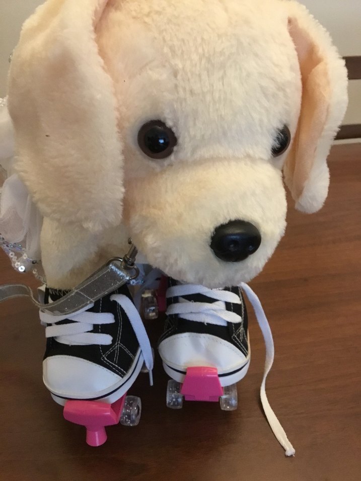 Beyaz Peluş Oyuncak Köpek ve Patenler