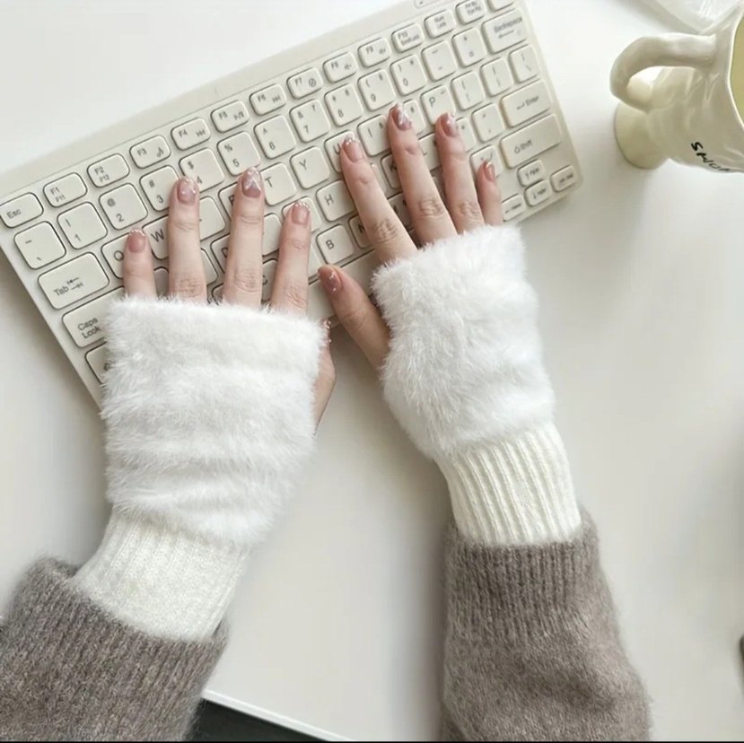 Beyaz Peluş Parmaksız Kışlık Eldiven