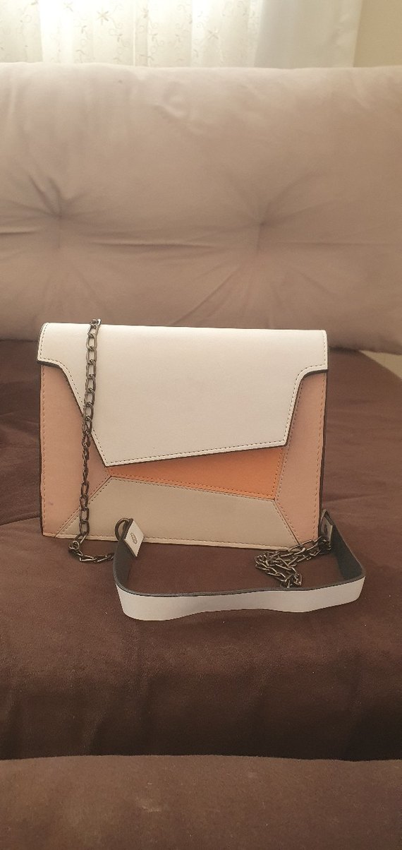 Beyaz pembe deri kadın çanta, zincir askılı. 2 kere kullandim. Saglam. #düğün #abiye #günlük #