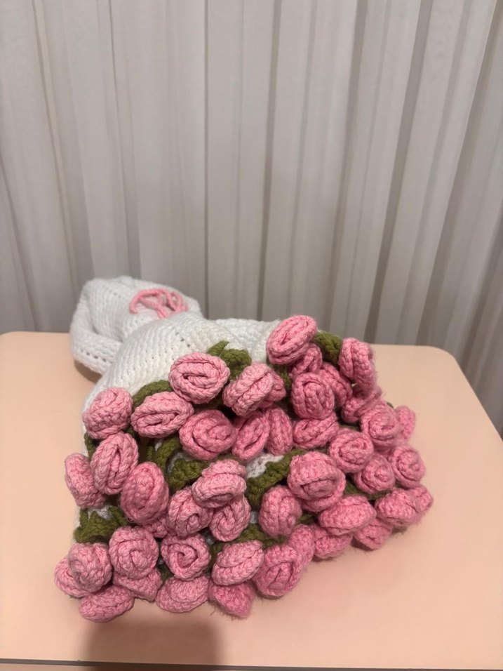 Yumuşak iple çift kat dolgun örülmüş beyaz pembe gül yaprak detaylı battaniye (isteğe göre farklı renk ve boyutta yapılır) -108 cm-