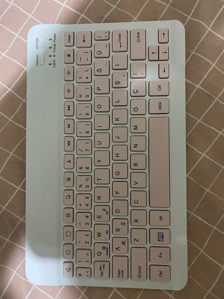 Beyaz ve pembe renkte, kablosuz Bluetooth bağlantılı, kompakt düzenli ve multimedya tuşlu klavye. Rahat kullanım sağlar.
