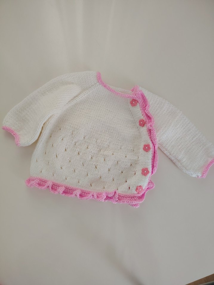 Beyaz Pembe Kenarlı Kız Çocuk Hırka