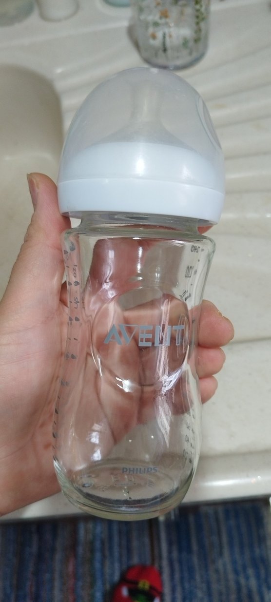Beyaz kapaklı, ölçü işaretli dayanıklı cam Philips Avent bebek biberonu. Kolay tutulabilir tasarıma sahiptir. 2 numarali başlık, birkac kez kirdim sonra plastik aldim plastik alinca bunu kullanmadim. #biberon #philipsavent @avent