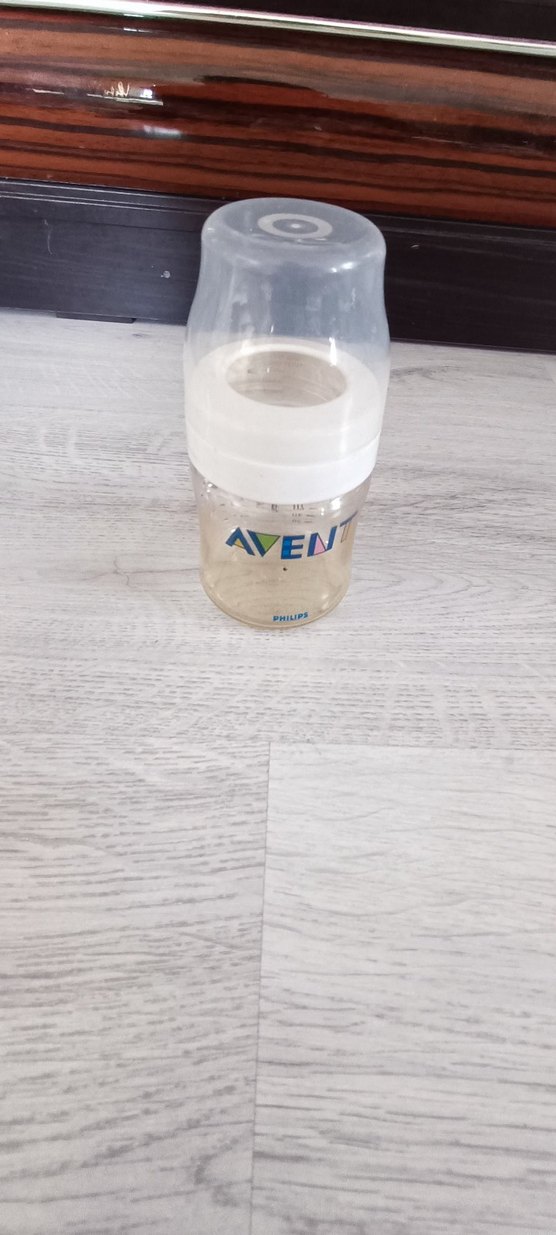 Beyaz Philips Avent bebek biberonu, şeffaf tasarım, güvenli kapak ve okunabilir ölçü işaretlerine sahiptir. ucunu eczaneden temin edebilirsiniz