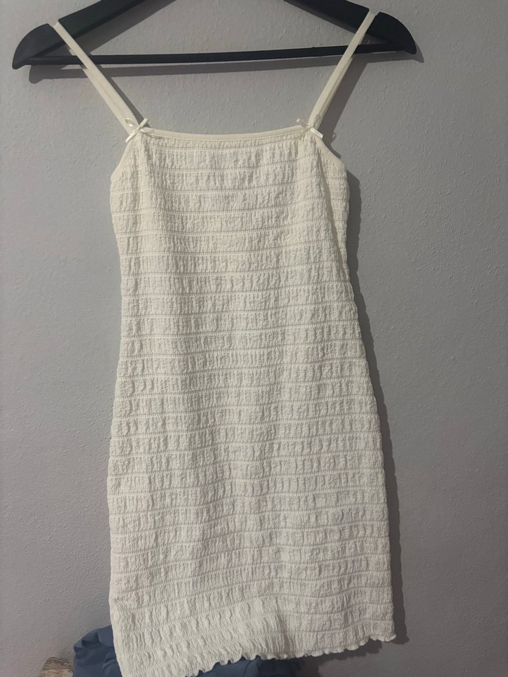 Beyaz Pilili İnce Askılı Mini Kadın elbise