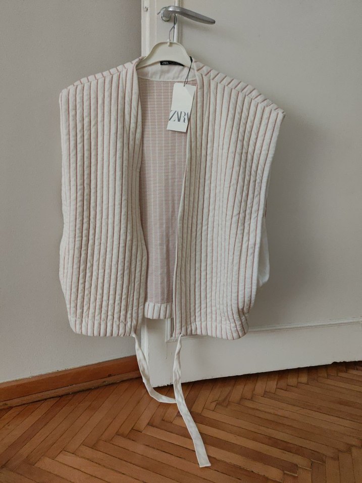 Beyaz Pilili Keten Kolsuz Mini Yelek