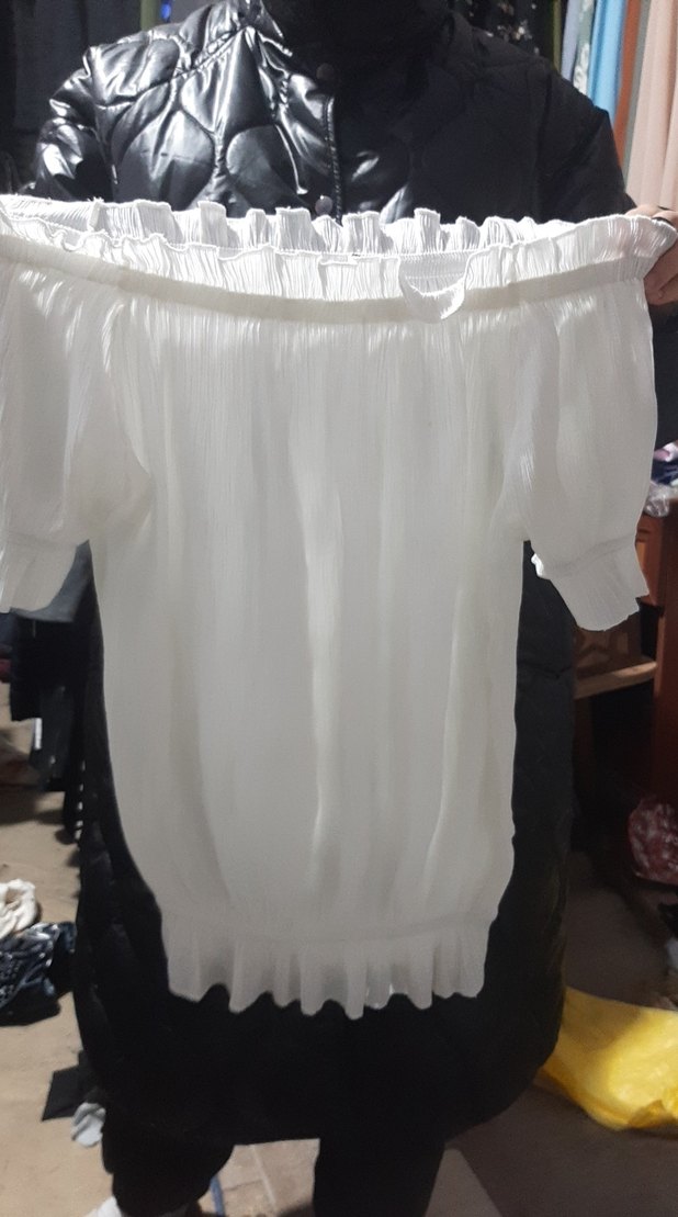 Beyaz keten kumaştan, pilili, kısa kollu ve kayık yaka midi boy bluz. Rahat kesimiyle günlük kullanım için hafif ve şık bir tercih.