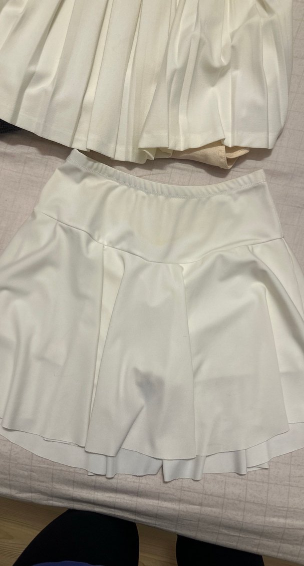 Beyaz renkte, pilili ve bol kesim midi etek. Düz sentetik kumaştan yapılmıştır, günlük athleisure ve street wear tarzına uygundur.