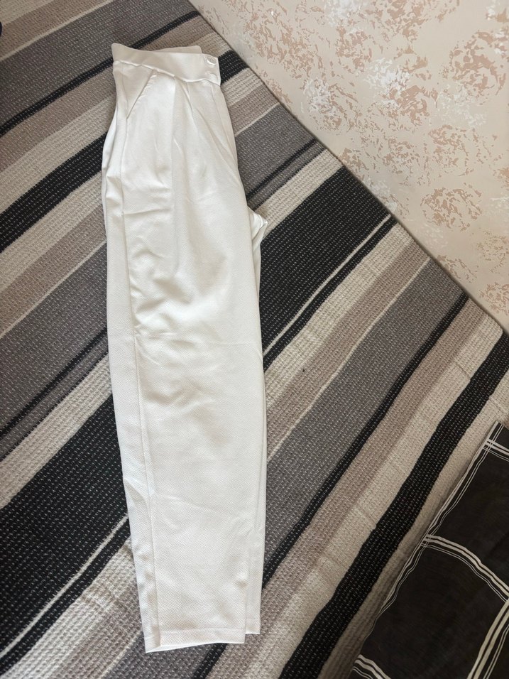 Beyaz Pilili Midi Kadın Kumaş Pantolon