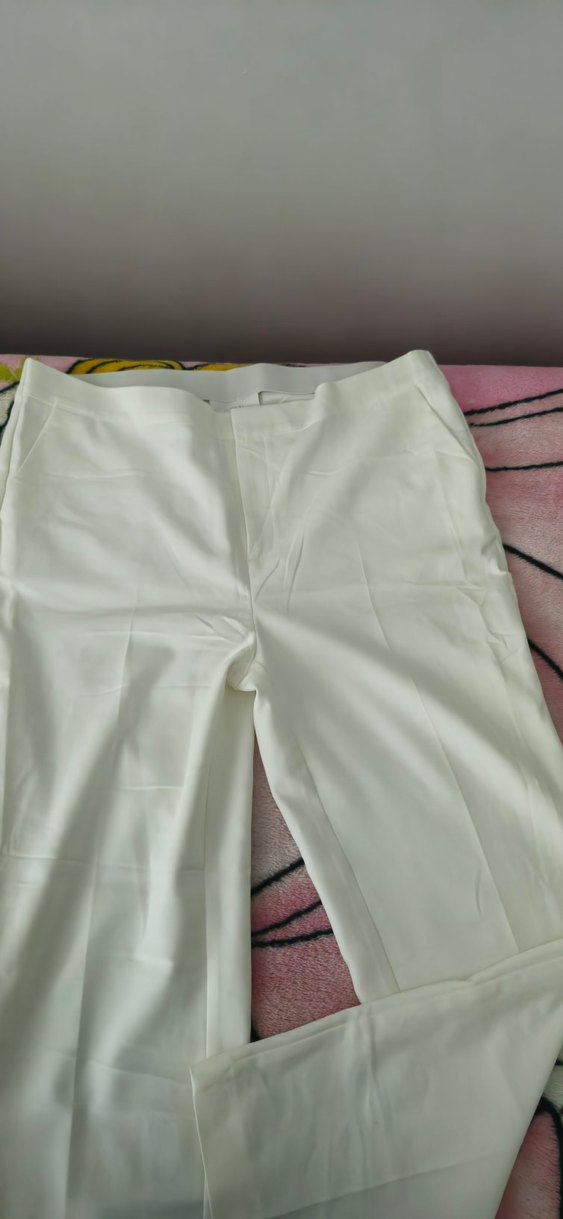 Beyaz renk, pilili ve midi boy kadın kumaş pantolon. Regular fit kesim, iş ortamına uygun şık ve rahat tasarım. Hafif renk ve sentetik kumaş.