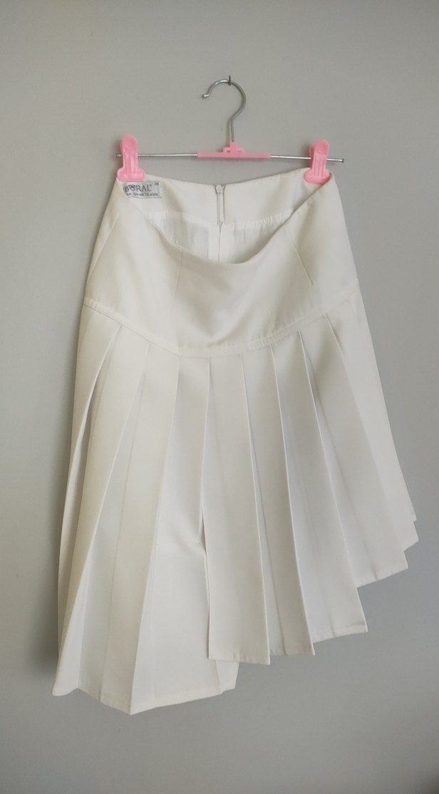 Beyaz pilili, gevşek kesim mini etek