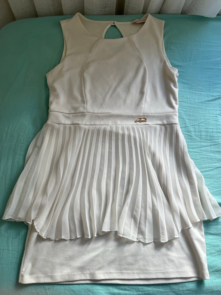 Klasik ve modern tarzda, beyaz renkli abiye elbise hafif solma vardir