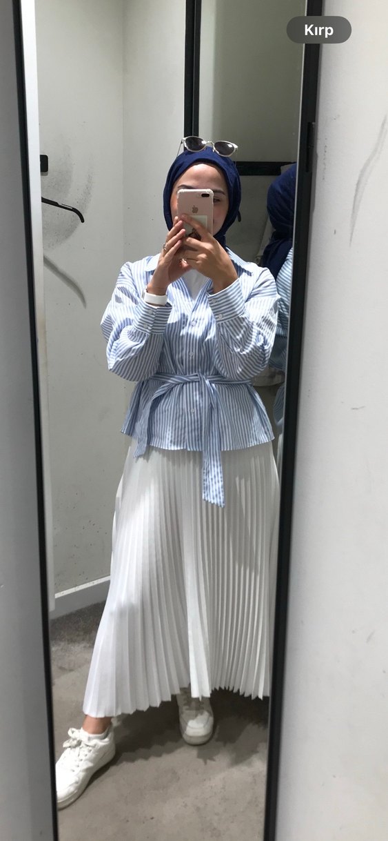 Beyaz Pilili Saten Etek