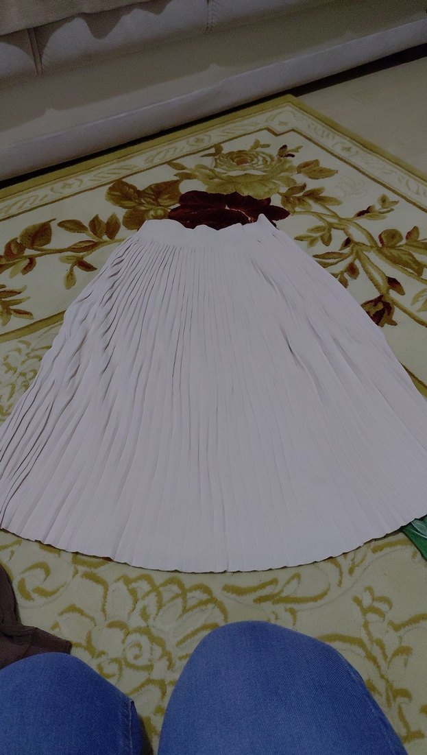 Bu beyaz uzun etek, pilili tasarımı ve bol kesimiyle yumuşak sentetik kumaştan üretilmiştir. Desensiz sade stili bohem düğün kombinlerine uygundur.