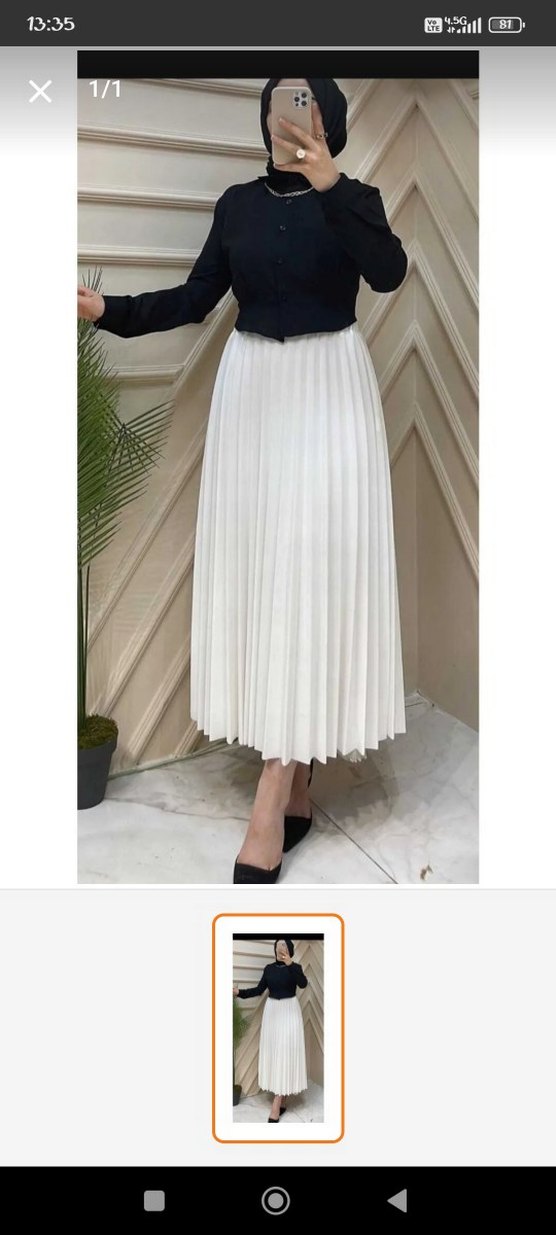 Beyaz pilili uzun etek, bol kesimi ve yumuşak sentetik kumaşıyla modern, minimalist tarz sunar. Günlük kullanıma uygundur.