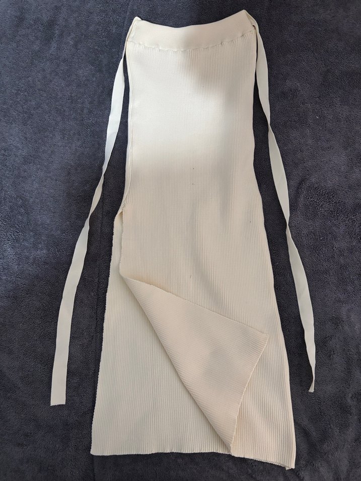 Beyaz uzun etek, pilili detaylara ve standart kesime sahip, sentetik kumaştan üretilmiştir. Minimalist ve sokak tarzına uygundur, günlük kullanım için idealdir.
