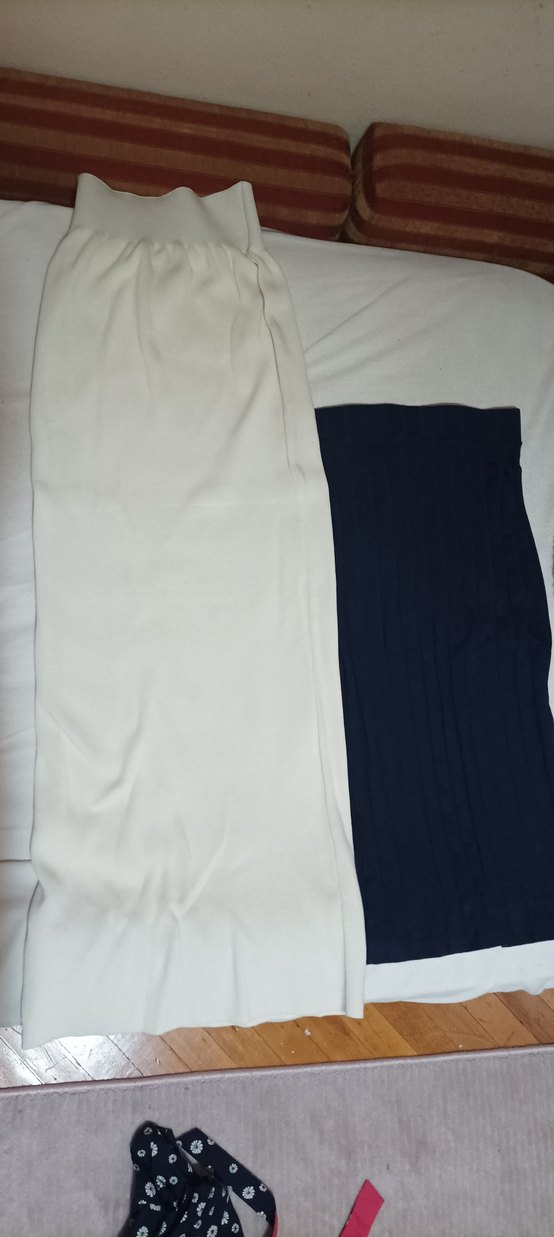 Beyaz renkte, pilili ve uzun kesim hamile eteği. Rahat kullanımlı, sentetik yumuşak kumaştan üretilmiştir. Minimalist ve normcore tarzına uygundur. ikisini birlikte satıyorum isteyene ayrı olarak satabilirim. kumaşlar esnek