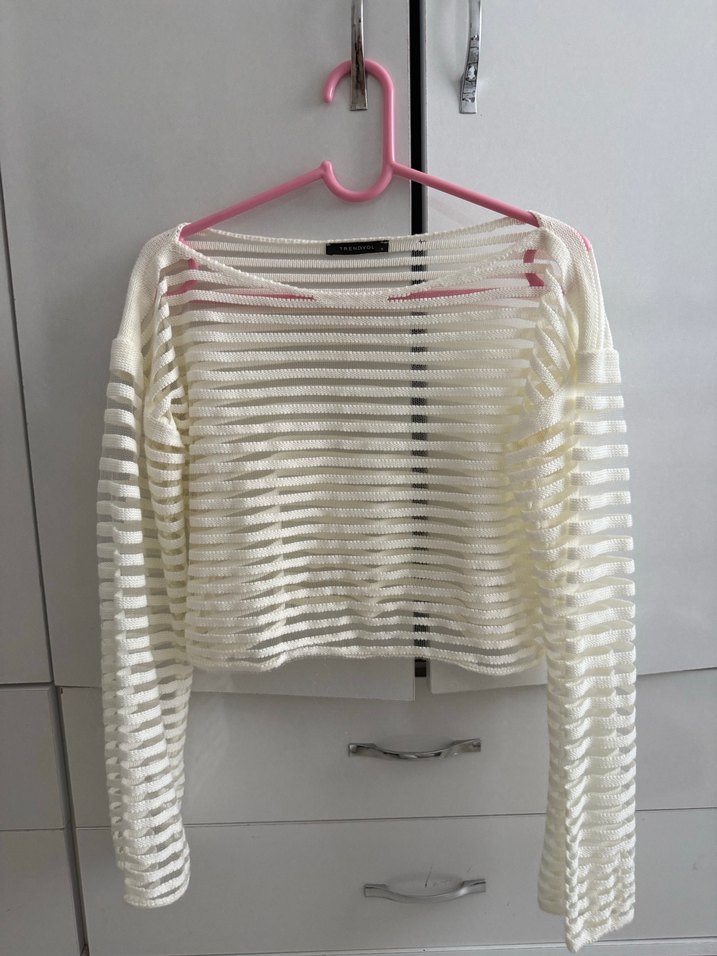 Beyaz Pilili Uzun Kollu İnce Kazak