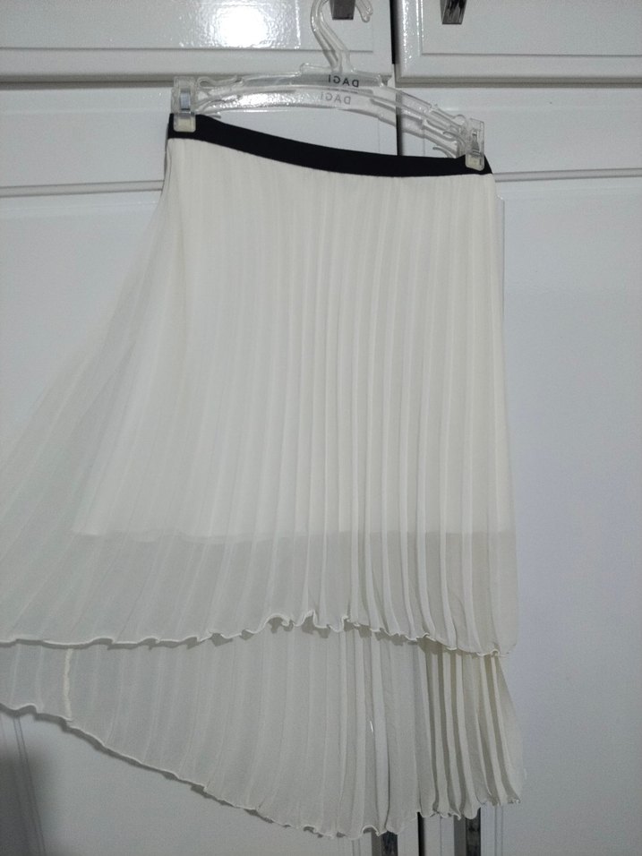 Beyaz Piliseli Kadın Mini Şifon Etek