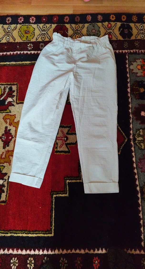 Beyaz Piliseli Kadın Pantolon
