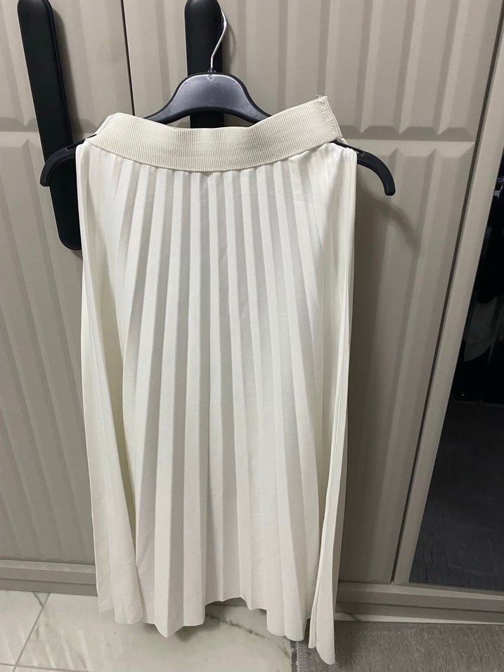 Beyaz uzun etek, piliseli detaylara ve regular kesime sahiptir. Yumuşak sentetik kumaştan yapılmıştır. Minimalist tasarımı günlük kullanım için uygundur.