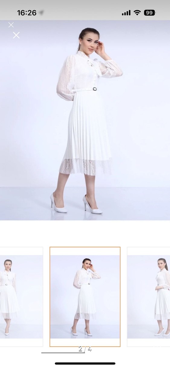 Bu beyaz midi etek piliseli detaylara ve regular kesime sahip, sentetik kumaştan üretilmiştir. Minimalist ve çağdaş bir görünüm sunar, ofis için uygundur. Nikah elbisesi