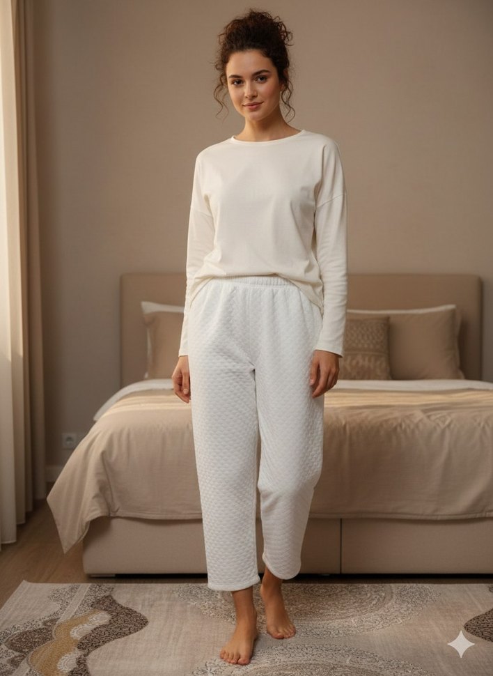 Beyaz Piliseli Midi Kumaş Kadın Pantolon