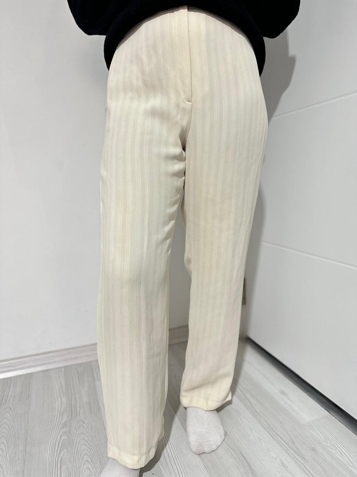 Sentetik kumaştan yapılmış, normal kesim kumaş pantolon, yepyeni sadece çekim için 1 defa giyildi.