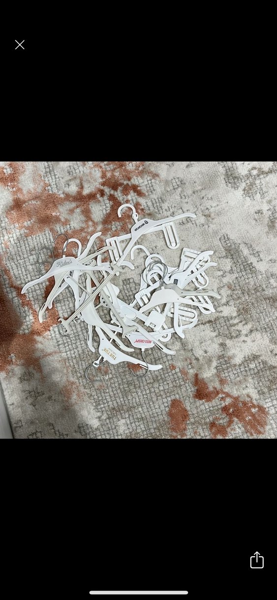 Çeşitli kullanıma uygun kancalı beyaz plastik askılar, kıyafet düzenlemek için ideal. 20ye yakın