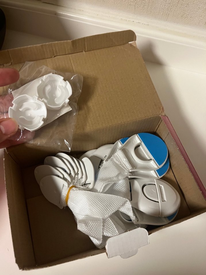 Beyaz plastik emniyet kilitleri ve cırt cırtlı bantlar, desensiz ve hafif malzemeden yapılmıştır, güvenli tutuş sağlar. Çocuk güvenliği için uygundur. ️priz kapalı iki adet