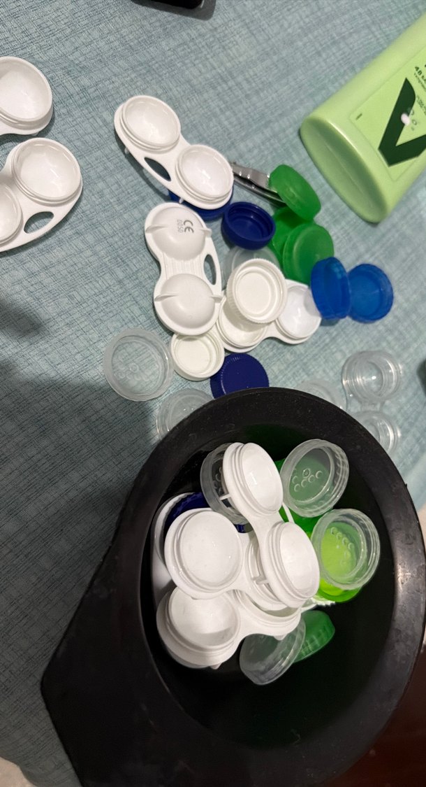 Beyaz plastik lens kutuları, renkli kapaklarla birlikte lenslerin güvenle saklanmasını sağlar. Mavi ve yeşil kapaklar mevcuttur.