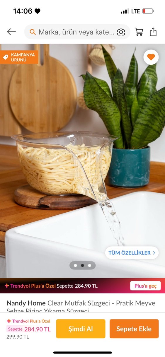 Beyaz renkli plastik malzemeden yapılmış, makarna süzmek için kullanışlı bir mutfak aracıdır. Suyu doğrudan lavaboya boşaltmaya yarayan pratik bir dökme ağzı bulunur.