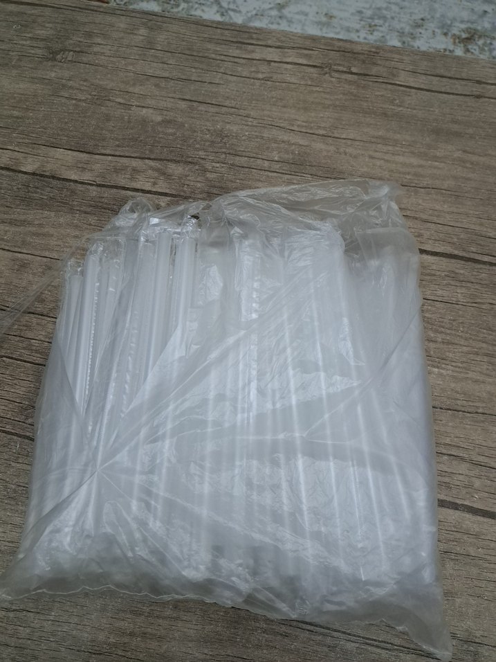 Beyaz plastik pipet oluşan, hafif ve sade bir set. 50 60 tane var