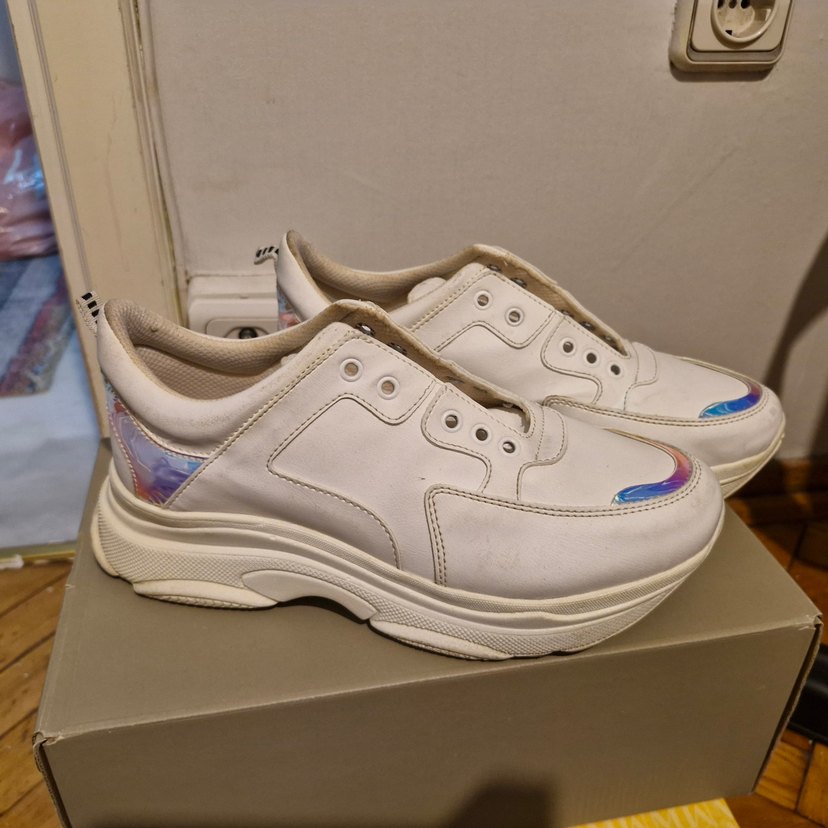 Beyaz Platform Topuklu Bağcıksız Spor Ayakkabı
