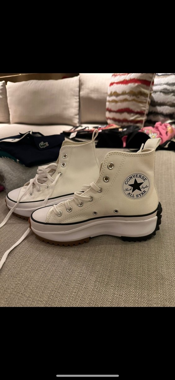 Beyaz Converse 37 numara All Star platform topuklu sneakers, baskılı ve kauçuk tabanlı. Trendy, rahat athleisure tarzı için uygundur. Orijinal ve yeni etiketlidir. Bali’den spor mağazasından alındı.