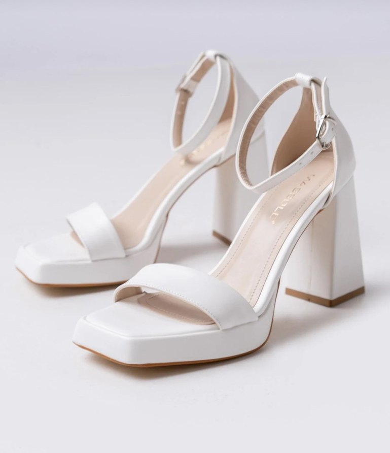 Beyaz platform topuklu kadın abiye ayakkabı, tokalı bilek kayışı ile modern klasik tasarımda, minimalist tarzda, düğünler için uygundur. Nikahımds giymiştim tekinin altında isimler yazıyor silinince çıkabilir. Çok rahat bir ayakkabı saatlerce ayakta kaldım hiç ağrı yaomadı