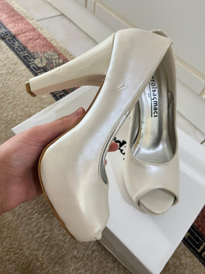 Beyaz platform topuklu kadın abiye ayakkabı, tokalı detaylı ve kauçuk malzemeden üretilmiştir. Düğünlere uygun modern klasik tarzda. Marka: erolsacmaci. ihtiyacı olan alsın diye ucuza koydum