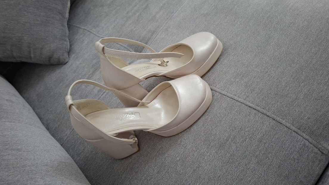 Beyaz platform topuklu kadın abiye ayakkabı, tokalı bilek kayışıyla minimalist ve çağdaş tasarıma sahip, düğünler için uygun. Dayanıklı kauçuk malzemeden üretilmiştir.