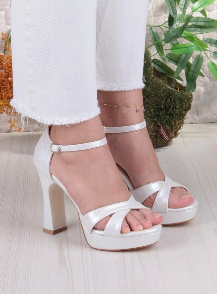 Beyaz Platform Topuklu Kadın Abiye Ayakkabı