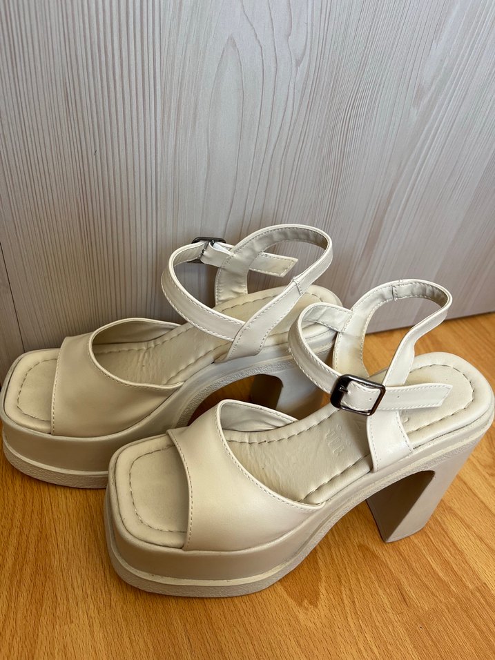Beyaz platform topuklu, tokalı kadın ayakkabı çok yüksek topuk