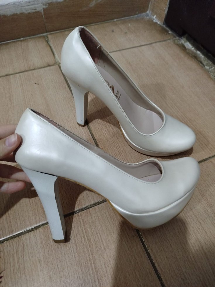 beyaz platform topuklu ayakkabısı, modern klasik tarzda, düğün ve özel davetler için uygundur. 10 cm topuğu mevcut. bir kez giyildi saglam ve temizdir. gelinlik altına veya nisana vs çok uygundur