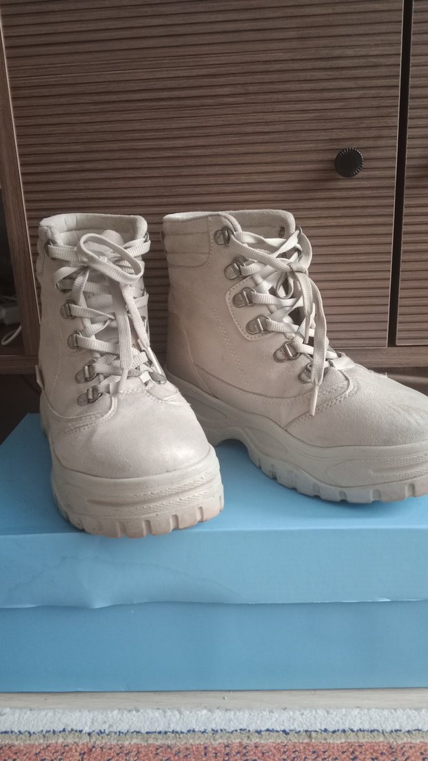 Beyaz platform topuklu kadın botları, kauçuk tabanlıdır. Sokak stili ve normcore tasarıma sahip, desensiz bu botlar dış mekan kullanımı için zahmetsiz şıklık sunar. 37 yazıyı ama 36 için uygun
