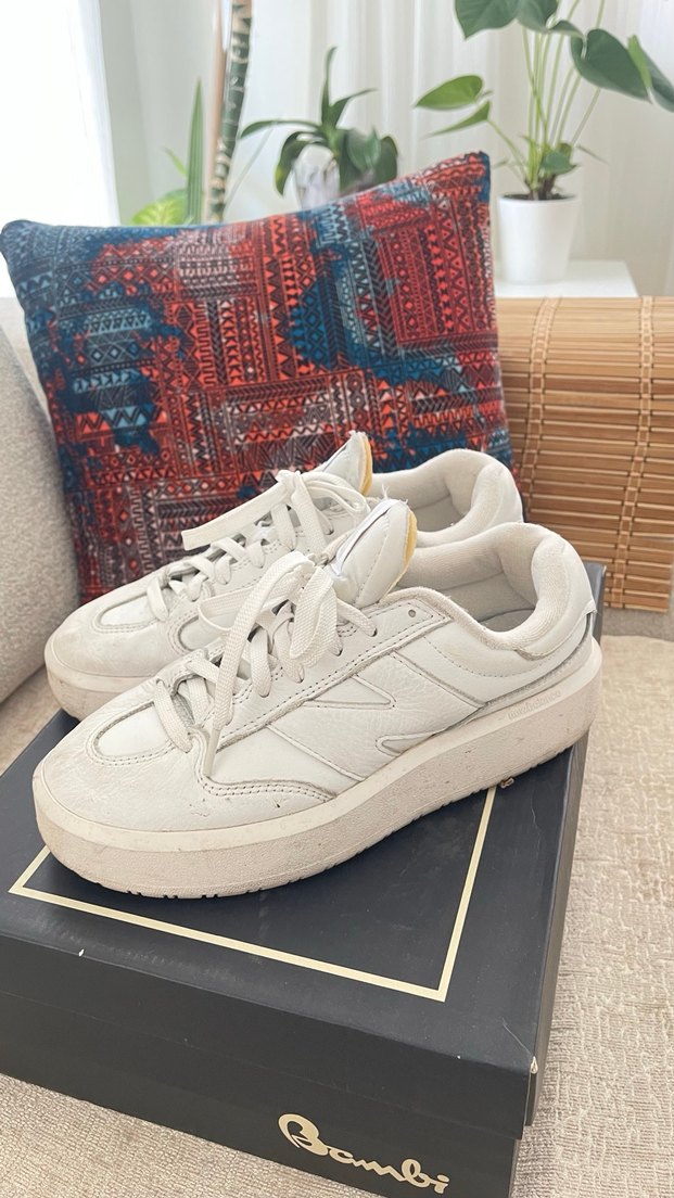 Fotoğraflarda göründüğü gibidir. Beyaz renkli, platform topuklu kadın spor ayakkabısı. Kauçuk malzemeden üretilmiş, sportif ve gündelik şıklık sunar.