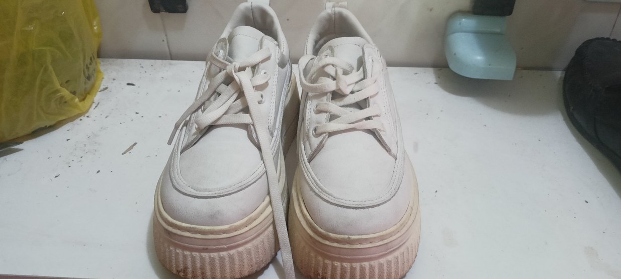 Beyaz platform topuklu kadın spor ayakkabısı, kauçuk tabanlı, desen içermeyen sade tasarımıyla sokak stili ve rahat kullanım için uygundur.