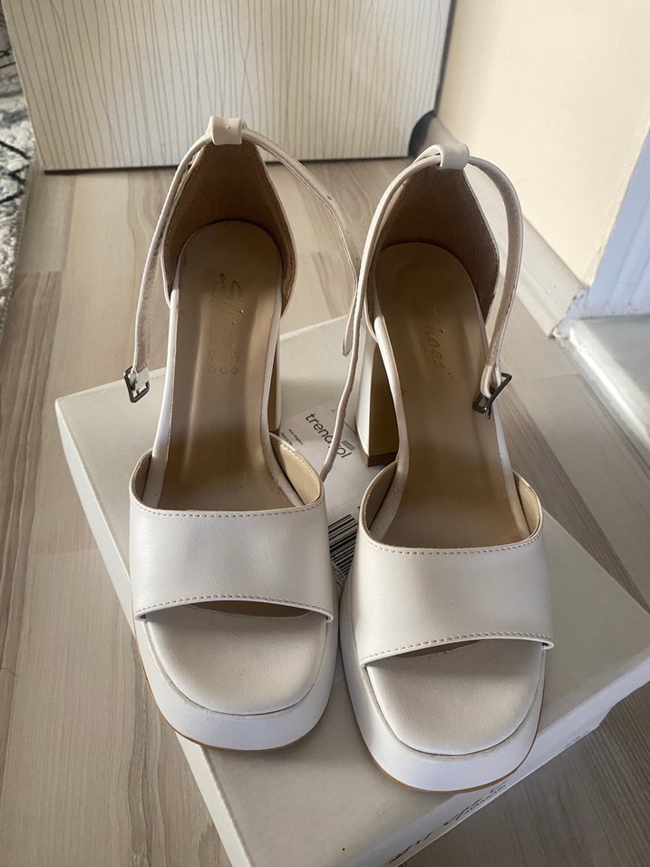 Beyaz Platform Topuklu Kalın topuklu Ayakkabı