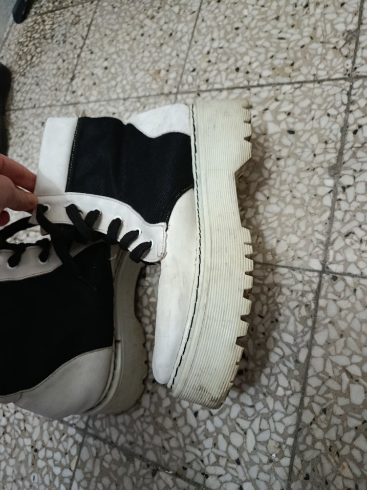 Beyaz platform topuklu, cırt cırtlı kauçuk kadın bot. Grunge punk tarzında, günlük kullanım için uygundur. ⚡